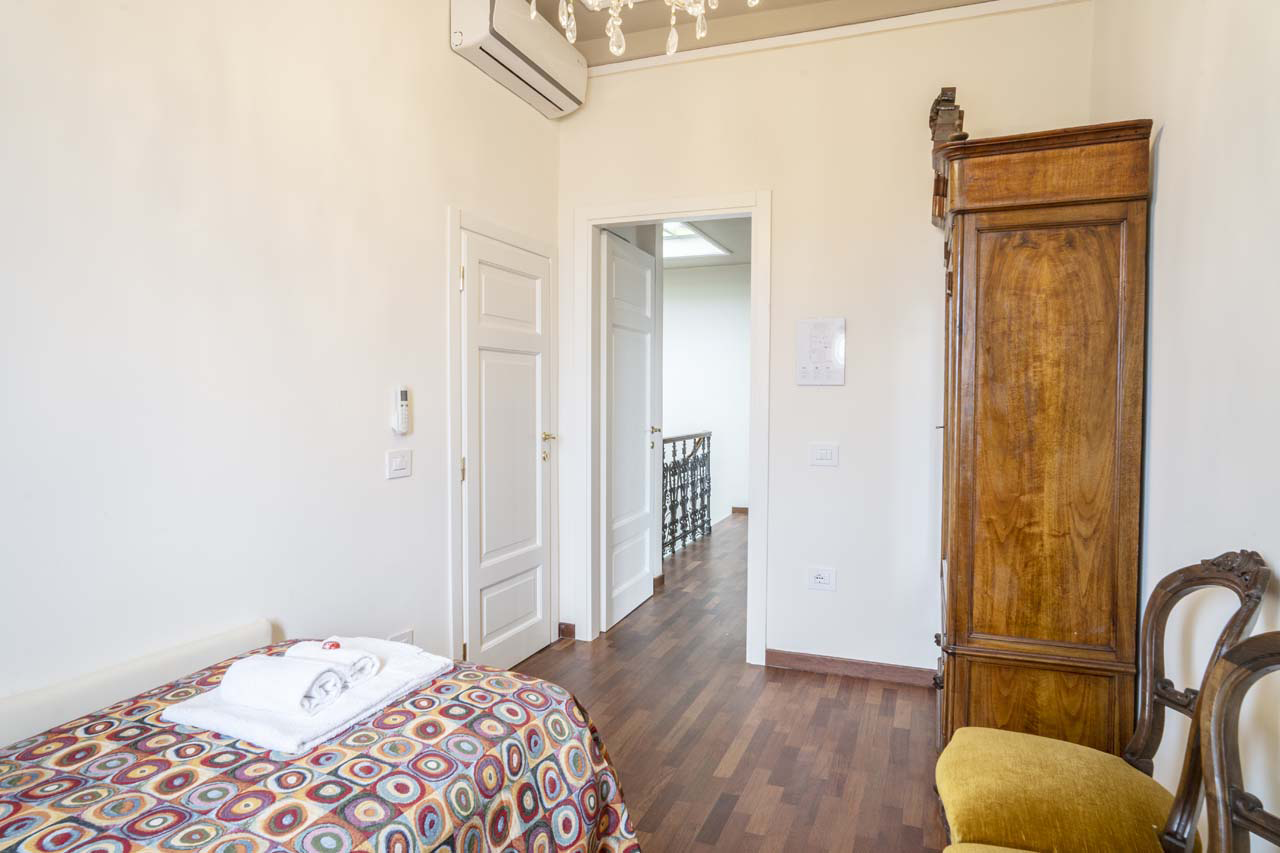 Very comfortable single bedroom, located on the second floor of the villa. It is possible to add an extra bed to accommodate two people. The room has a large private bathroom and it is equipped with a wardrobe, a Smart TV and air conditioning.