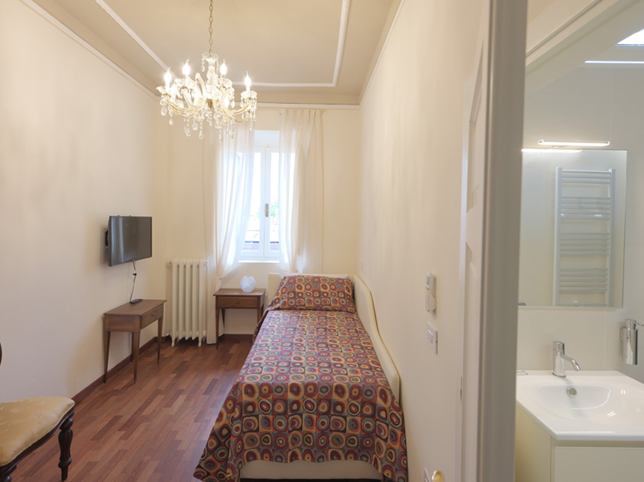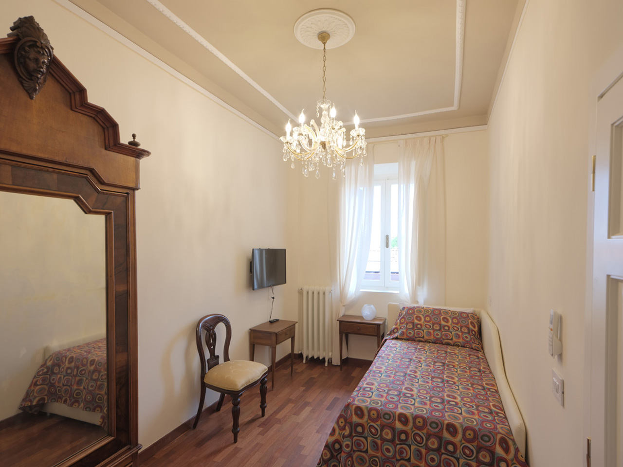 Sehr komfortables Einzelzimmer, im zweiten Stock der Villa. Es besteht die Möglichkeit eines zusätzlichen Bettes. Das Zimmer hat ein großes Badezimmer und ist mit einem Kleiderschrank, Smart TV und Klimaanlage ausgestattet.