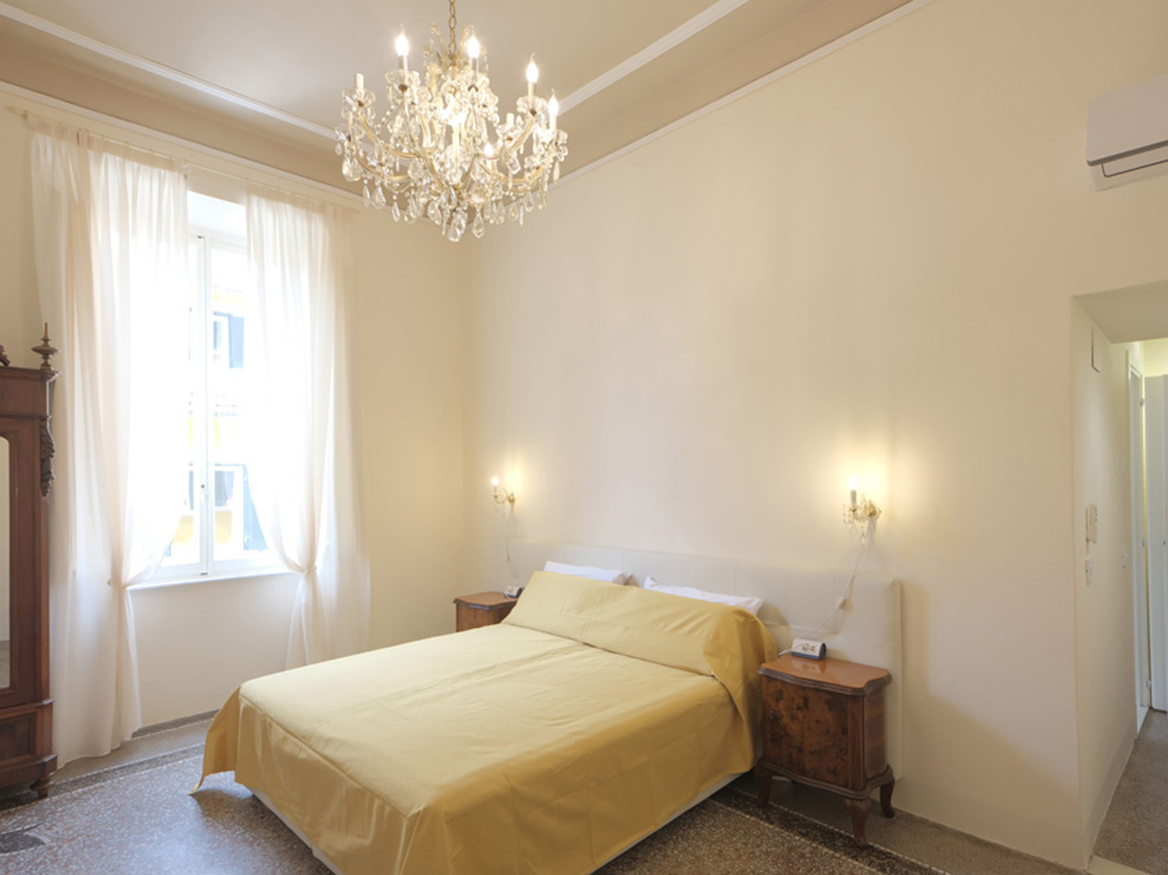 Incantevole e spaziosa camera doppia, arredata con mobili antichi e fornita di guardaroba, smart TV, aria condizionata, macchina per il caffè e bollitore. La stanza possiede un bagno molto grande, rivestito in marmo. Può essere aggiunto un letto extra per ospitare tre persone in totale.