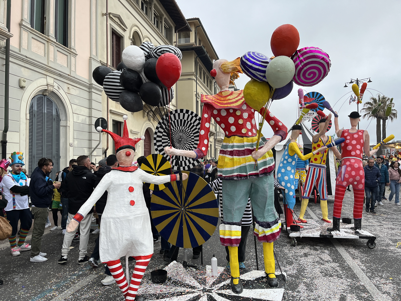 La tradizione del Carnevale di Viareggio nacque nel 1873, quando un gruppo di giovani borghesi che frequentavano il Casino Cafè ideò una parata di carretti e maschere lungo la Passeggiata. Da allora, per sei volte in un mese, i carri – enormi strutture che rappresentano in modo satirico o provocatorio il mondo della politica, dell’intrattenimento o di attualità – sfilano lungo la Passeggiata di Viareggio.
